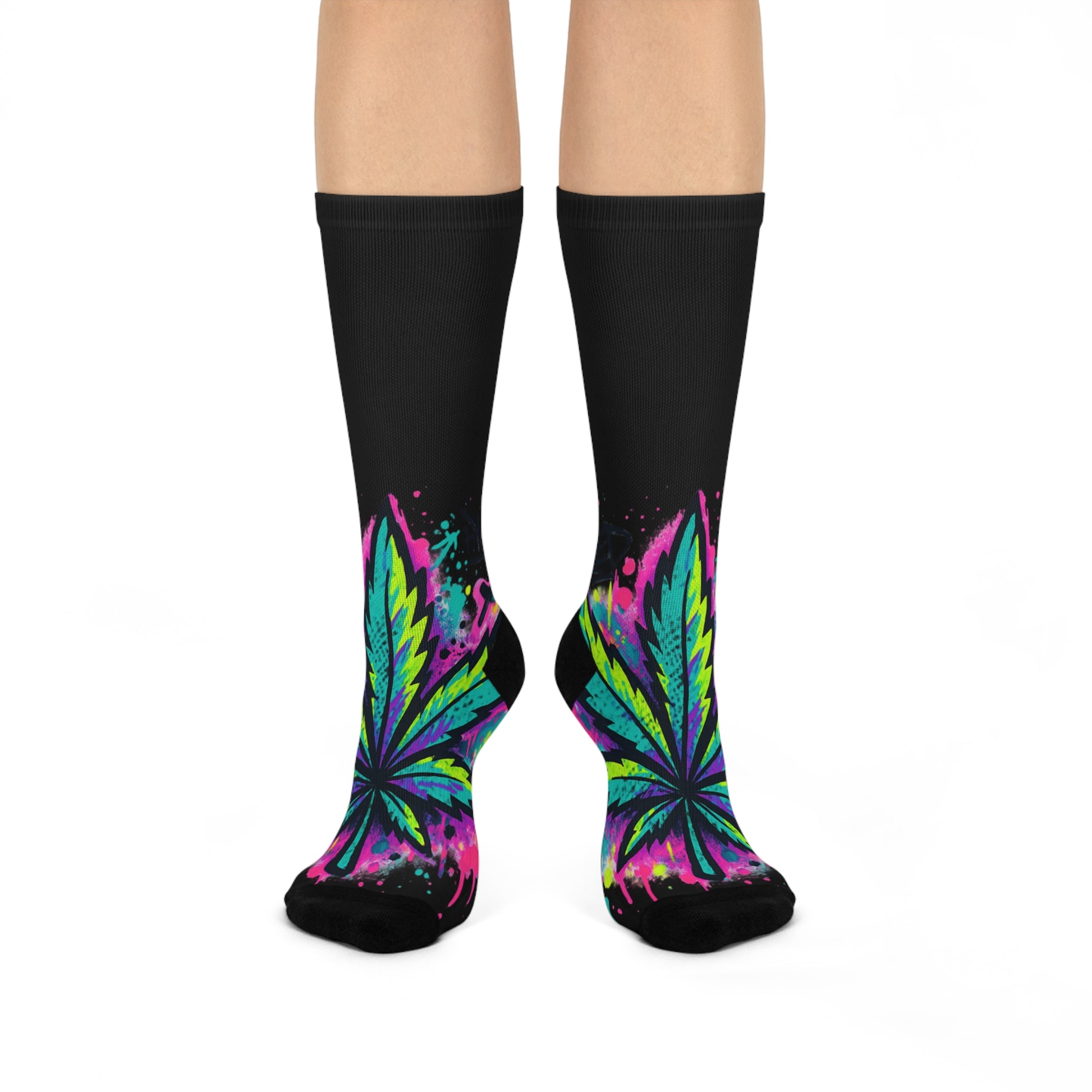Vibrant Cannabis Crew Socks | Fun Gift for Stoners, Cozy Lounge Wear, Colorful Streetwear, Unique Festival Accessory, Everyday Comfort